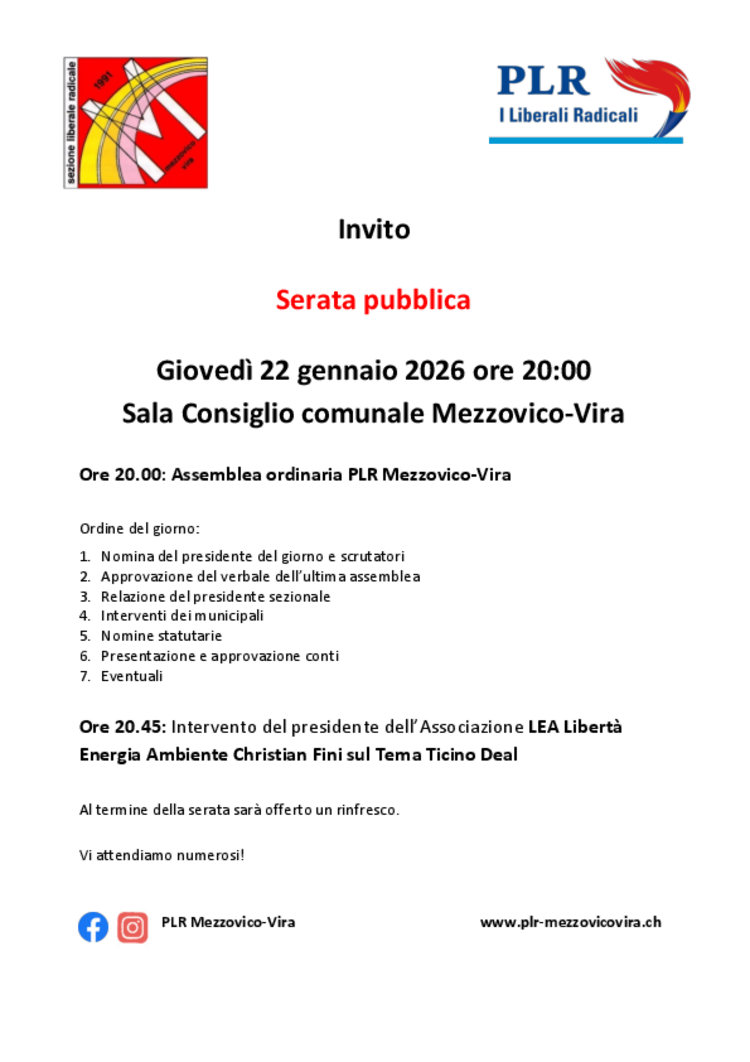 PLR Mezzovico-Vira - Assemblea ordinaria